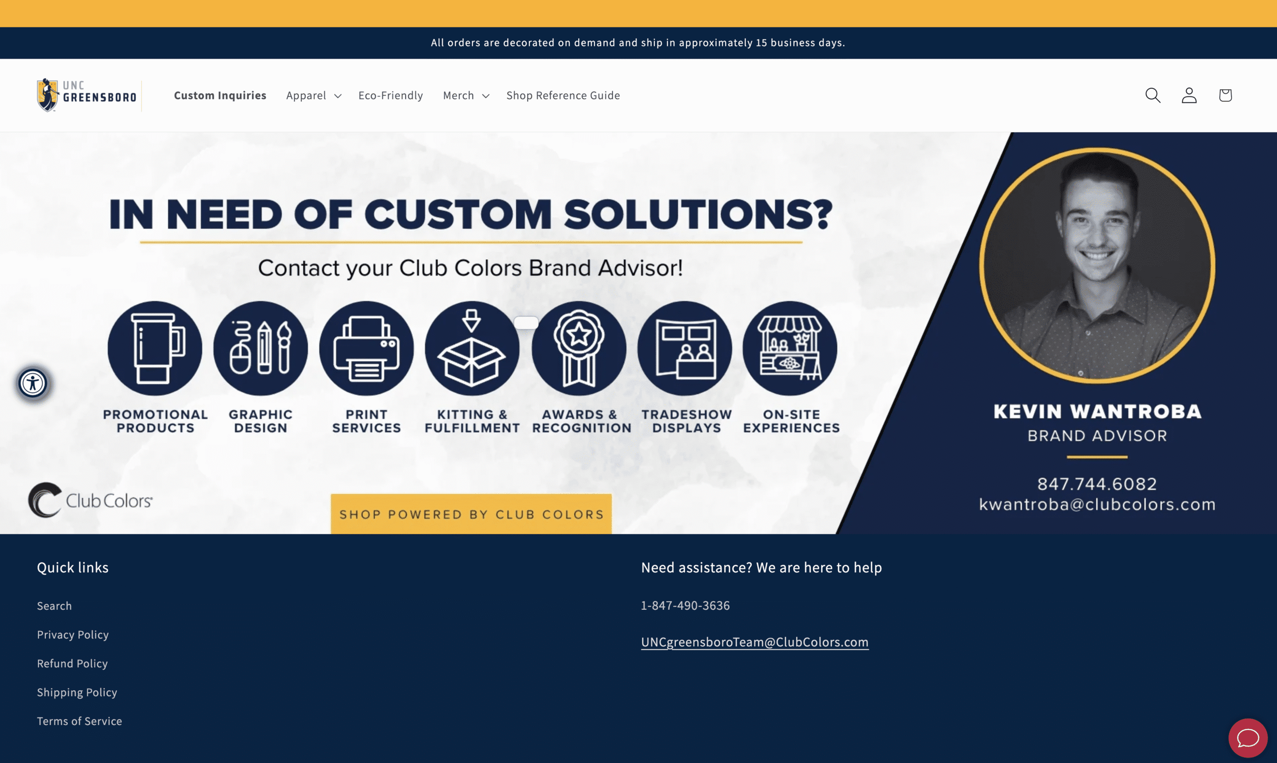 UNC Greensboro wanted to centralize and streamline its internal merchandise ordering process across all departments, ensuring brand consistency and compliance with institutional purchasing protocols. The university sought a Shopify solution that felt modern, required minimal training, and integrated seamlessly with internal workflows.